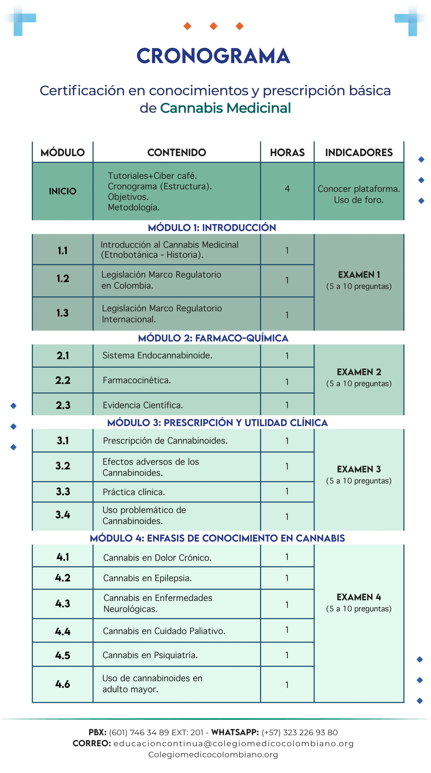 Por este motivo, el Colegio Médico Colombiano y ASOMEDCCAM se complacen en presentar el curso de certificación en Conocimientos y Prescripción Básica de Cannabis Medicin diseñado para médicos profesionales.