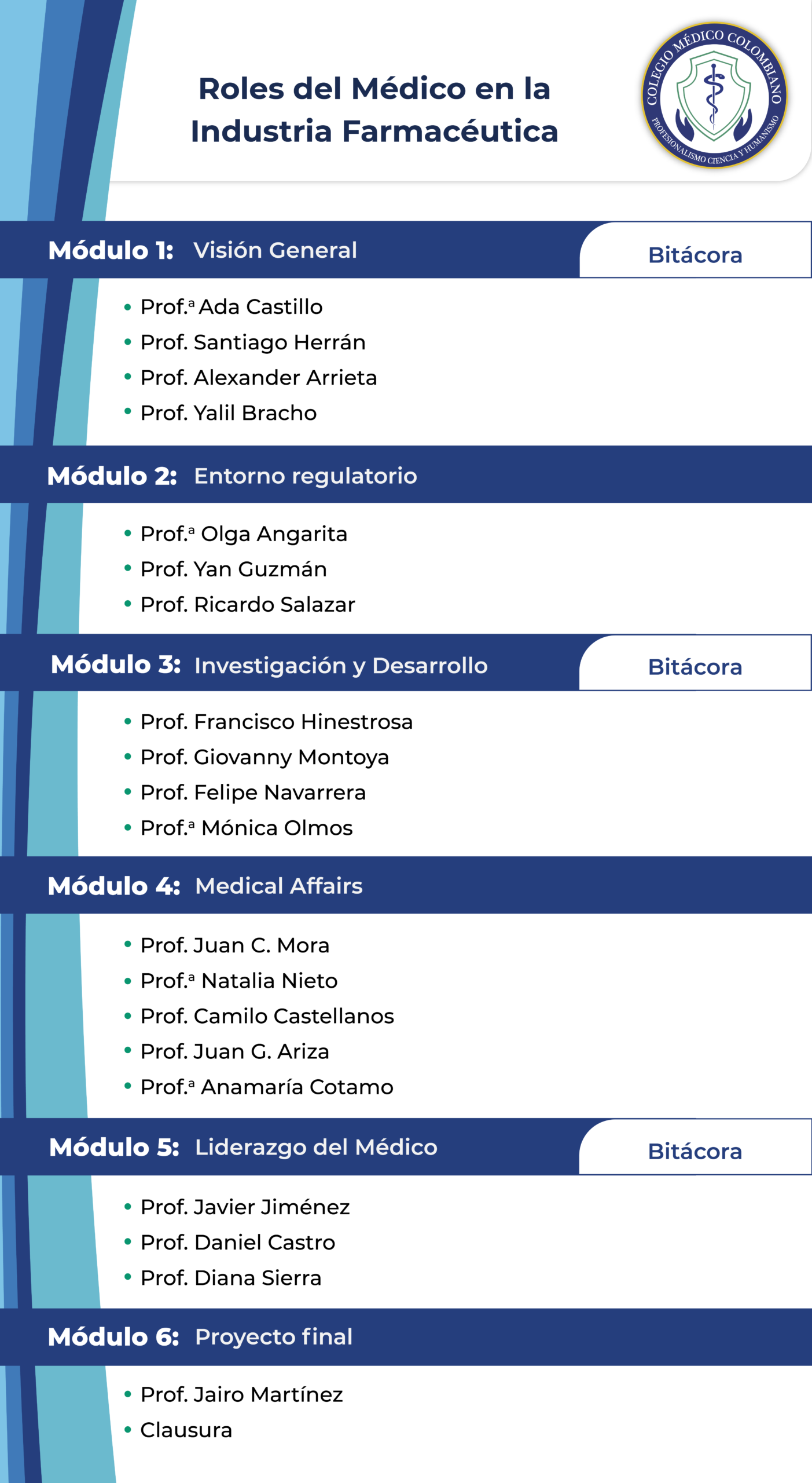 Al culminar con éxito recibirás la certificación como Pharmaceutical Medical Advisor, avalada por el Colegio Médico Colombiano.